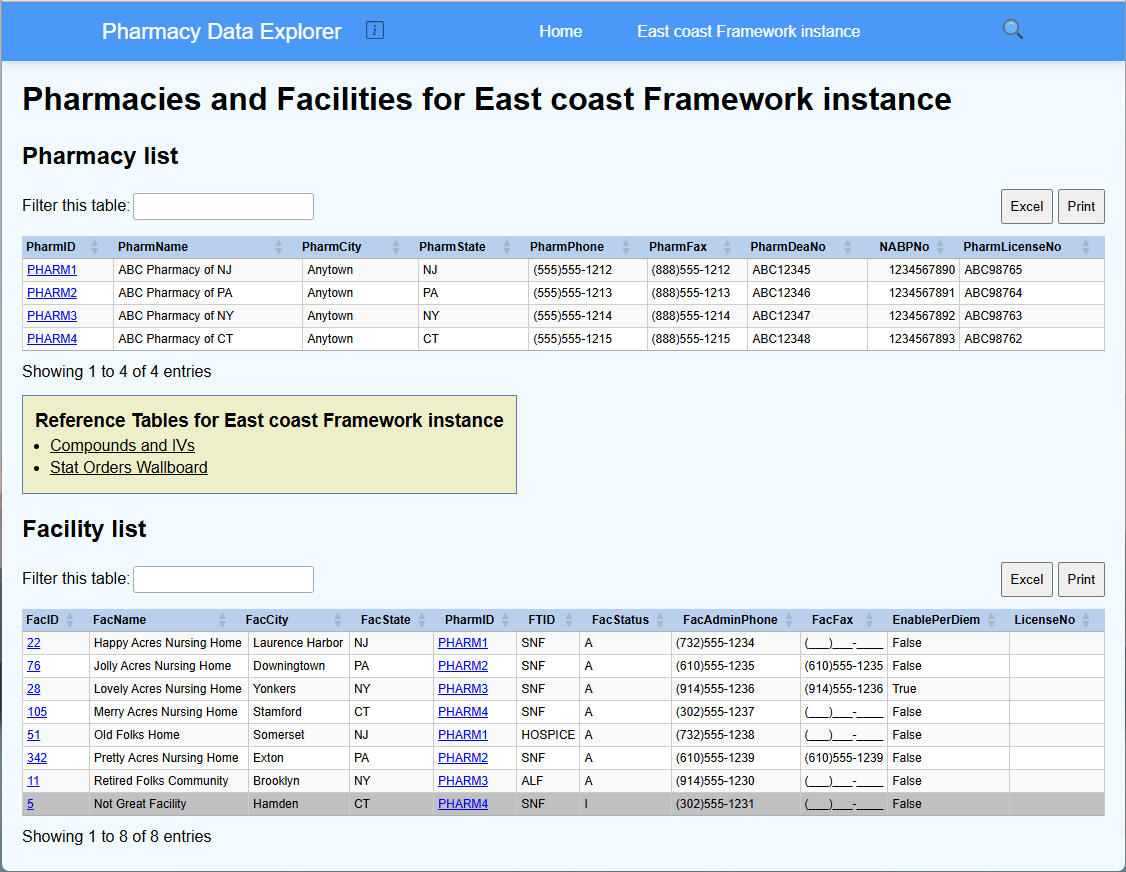 Pharmacy Data Explorer stands out for its innovative approach to accessing and presenting information from all of your FrameworkLTC® environments. Installed on a web server in your data center, with direct access to your pharmacy data, this tool augments traditional methods of data retrieval that require the FrameworkLTC® software.Select the database instance and start exploring the data. No longer confined to navigating multiple screens or waiting for printed reports, pharmacy employees can now explore real-time data with just a few clicks.